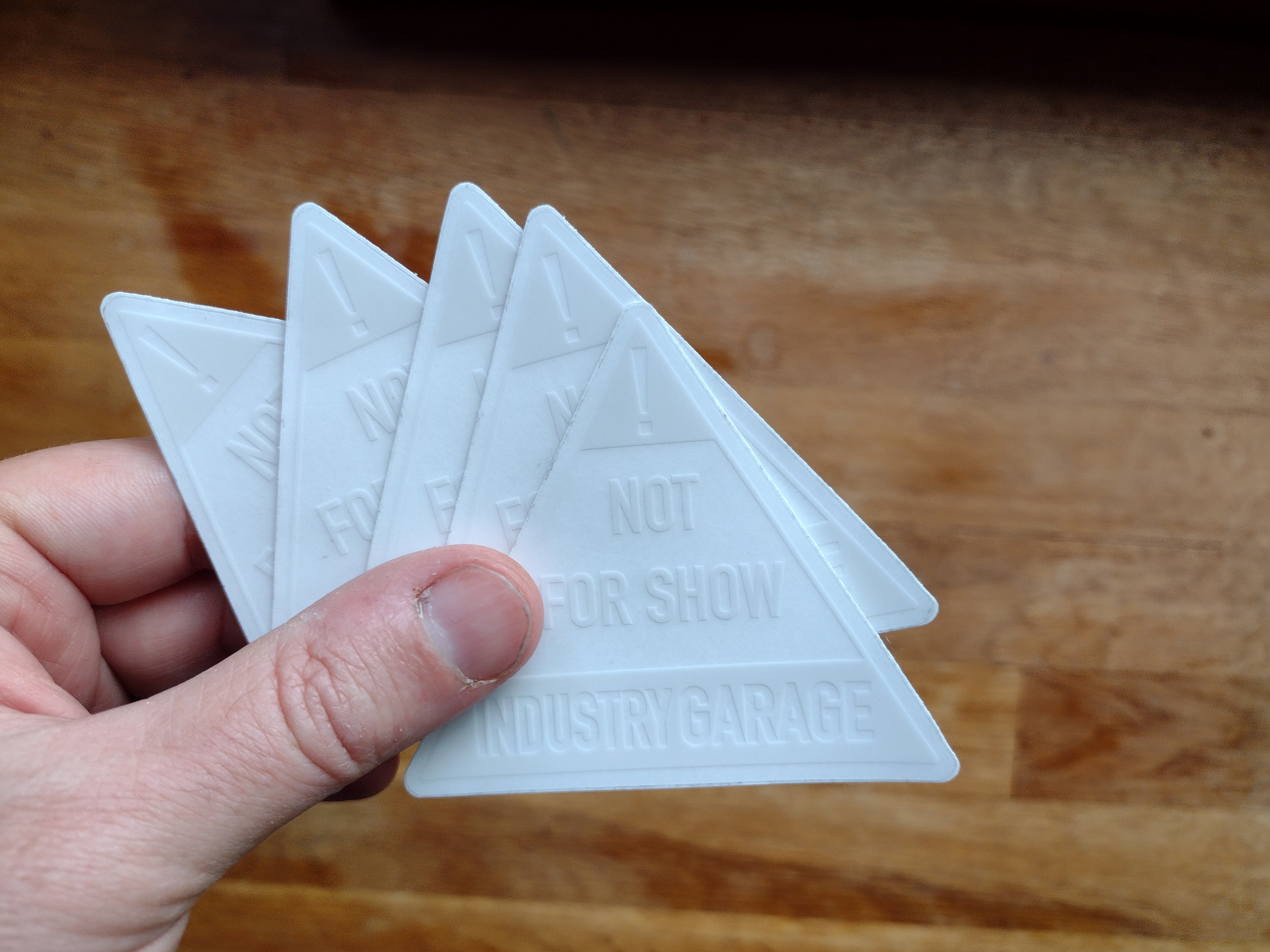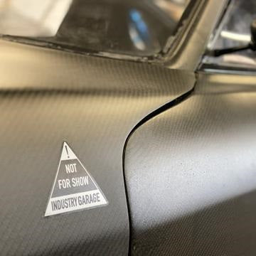 He's a workhorse, not a show pony. Ya dig. This clear sticker with white lettering lets them know.